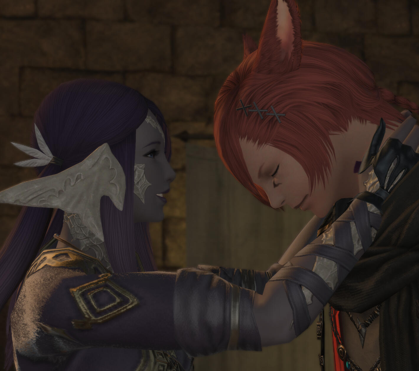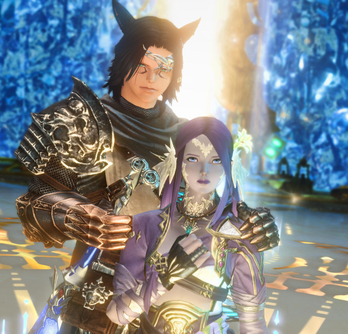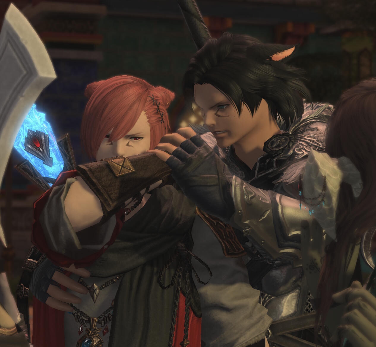 G'raha remembers very little of his family. The only things he remembers are his mother singing him songs of the Allagan Empire and his father telling him stories of heroes of the past, the Allagans and the ties the G clan has with them.He was still a child when the Garleans raided his village, burning everything and taking his clan to do who knows what to them. Wanting to protect their only child, G'raha's father, the current Nunh and G'raha's mother handed their son to a member of another clan to take him away. The last time G'raha saw his father was him fighting the Garleans, making sure his son made it out alive.The miqo'te took G'raha to Sharlayan and left with the Students of Baldesion. One of the members offered to care for him with her husband and their adopted son. G'raha stayed with the North family and became very close to their son Mervin. Though their rules didn't make sense to him. such as he was never allowed to go into Mervin's room or remove his circlet that he wears every day. He was also not allowed to call Mervin his "brother" as they aren't his family, just his guardians.The rules didn't stop the two from becoming close, and they would get into trouble. When kids bullied G'raha for his two different-colored eyes, Mervin stepped in to protect him. The two entered the studium together, and while Mervin went into magitek, G'raha went into Allagan and Sharlayan history.During their studies, the two would sneak around at night, getting into forbidden parts to find a way to help Mervin use aether. This led to Mervin's father having a gleaner named Erenville to get them out of trouble.Thanks to his studies and his groundbreaking research into ancient arcane wisdom. He earned his Archon marks on his neck, and around the same time, he became a full member of the Students of Baldesion. earning his mark on his left arm and becoming friends with Krile.When he was 18, he travelled to Eorzea for the first time since fleeing from his home. he met with the bodyguard who was to protect him while he studied the ruins. He was surprised to see his guard was a miqo'te around his age. The miqo'te named Kei took him to the ruins, and when they were attacked by some tonberries, Kei got outnumbered and, seeing his bow on the ground, G'raha grabbed it and saved him.Once done with the ruins and returned to the city, Kei made him a bow, and before he left, he taught G'raha a few things before he left for Sharlayan. G'raha and Kei wrote to each other, and G'raha kept up with his bow training, which gave Mervin the idea to study battle arts.When the calamity happened over at Eorzea, G'raha waited to hear any word from Kei. When he finally got a letter from him, he read that Kei saw a huge crystal and wanted to know if that's normal. With Krile's help, without knowing why he wanted it, G'raha gathers info about the Echo and writes back to Kei with this info.Five years later, G'raha was tasked with the duty of investigating the Crystal Tower, the most fascinating and forbidding of the surviving relics of the Allagan Empire. Before he left for Eorzea, he sent two letters; one to Mervin, who left Sharlayan three years ago, and the other to Kei, who hasn't been returning his letters for the last two years. asking them both to meet him in Mor Dhona and bring anyone who can fight with them.