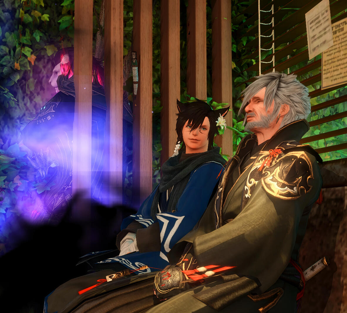 Kei was born to a father who never wanted a son. His father hated Kei to the point of ignoring him, but when Kei was able to walk, his father would hit and scream at him. After being thrown by his little tail down some stairs, a 5-year-old Kei ran out of his home and into the forest in the dark and in the rain.He didn't know that a voidsent was watching him. A strong, smart and dangerous voidsent that looked like a white hrothgar. He gets close to Kei, and when he learns what happened to Kei, something inside the voidsent got tight. He offers a pact with Kei.Kei agreed, and once the pact the two were suddenly teleported out of the forest and to just outside Ul'dah. Right before Kei passed out, the voidsent picked him up and carried him to the children's home.For the next 10 years, Kei jumped from family to family, unable to stay with a family for longer than a year. They all give up on him due to his attitude and something "evil" around him. The voidsent made things hard for Kei. Not long after his 15th nameday, an old man offered Kei a home and even some training as a samurai. Kei agreed, not seeing this lasting. Instead, the man, Hiro Kiyoshi, gave Kei his forever home. even giving him his new name, his name Kei came from the voidsent, and Hiro gave Kei his surname.Hiro trained Kei as a sellsword/mercenary, and at 19, Kei went on his first job alone. He meets a red-haired miqo'te named G'raha Tia, who came to Eorzea to study some ruins from the 5th Astral Era. The two went to the ruins, and when fighting some tonberries, G'raha grabbed Kei's bow and saved him. The two became friends after that, and when G'raha left Eorzea, the two wrote to each other.Kei and Hiro joined the fight at Carteneau. After losing Hiro in the chaos, Kei gets knocked down and as a garlean tried to kill him, Kei lifted his arm up to protect himself, and a shield appeared. Using the shock of the shield's appearance, Kei knocks the garlean out. Using his new "job jumping" skills, he finds Hiro and the two fight until Dalamud falls and Bahamut comes out. Kei calls to his voidsent, who uses Kei's old name K'mal, to get him and Hiro out of the way. K'mal opens a void gate and sends the two to Gridania. Once out of the void gate, Kei drops to the ground.While unconscious, Kei sees a huge crystal and a voice telling him that he is the darkness that is meant to be. When he wakes up, he sees Hiro at his bedside and an au ra girl cleaning his wounds. he thanks her, and once home, Kei tells Hiro what happened and sees the crystal in his dreams. K'mal voices how his aether just got stronger, and to check his bag, where a crystal of light was.The next morning, Kei woke up to see that Hiro was gone. At first, he thought he had missed their morning training, but he couldn't find Hiro. No note from Hiro, his soul crystal and katana were still here. Five years of thinking that he had finally found his home... K'mal points out that Hiro never leaves without his katana, so someone kidnapped him.For the next five years, Kei searched for Hiro. he shut his heart off from the world, not wanting to get hurt again. Even with his girlfriend, he didn't let her in fully. Although not part of any mercenary groups, he did work with the Black Fangs in his search for the man who was a father to him.